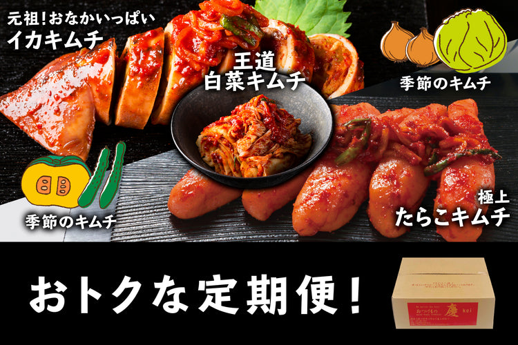 【 定期便.A 】イカキムチ or 明太子+白菜キムチ+季節のキムチ