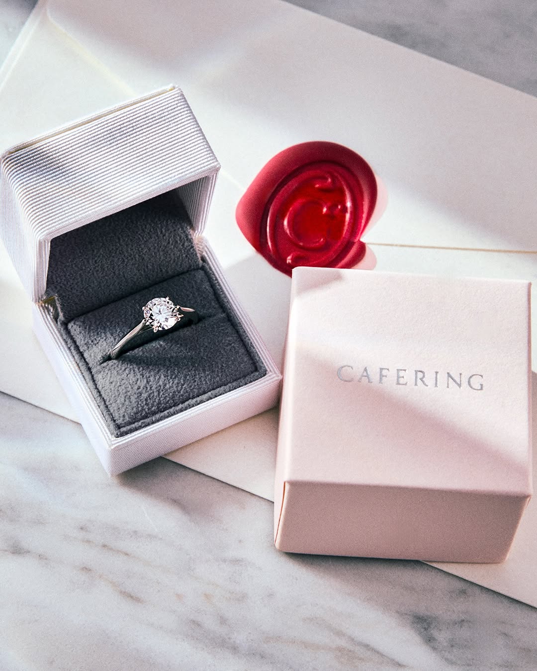 CAFERINGでは、サプライズプロポーズを応援する「手のひらサイズのミニリングボックス」を無料でお付けしています。