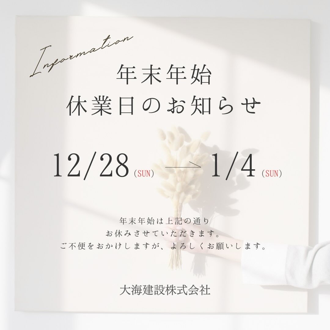 皆さま今年も1年お世話になりました?大海建設は28日から4日まで休みとなっております?♂️また来年もよろしくお願いします?♂️#大海建設 #panasonic #一戸建て #戸建て #耐震等級3 #耐震工法 #テクノストラクチャー #平屋#パナソニックビルダーズグループ #引渡し式#熊本#福岡#注文住宅#住宅型有料老人ホーム#シンプル#可愛い#強くてリッチな家#アパート#和室