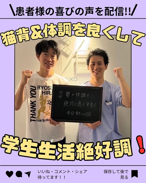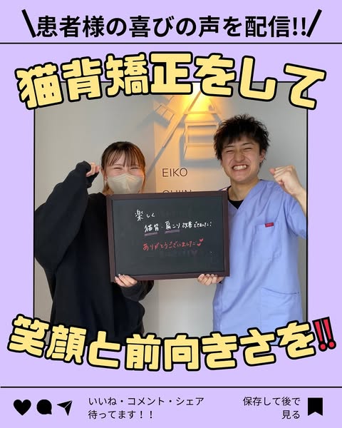 猫背矯正をされている患者様からとても嬉しいお言葉を頂いたのでご紹介させて頂きます!