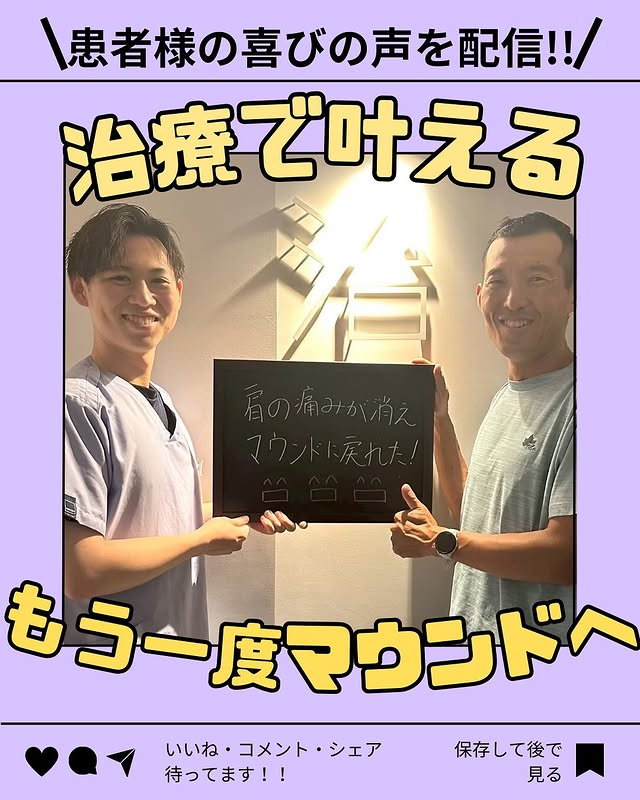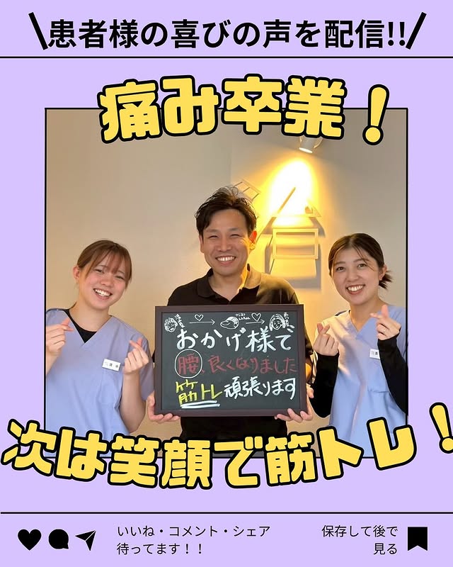 また「痛みが取れて終わり」ではなく、再発しない健康な身体づくりの重要性もお伝えしています!! セルフケアの大切さも都度お伝えしているので二人三脚で取り組んでいます。?️♂️