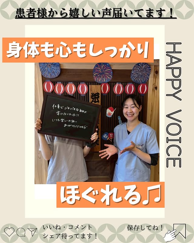 当院では、痛みの根本から改善することで、患者様が痛みがなく、笑顔で楽しい毎日が送れるよう全力でサポートさせて頂きます😊