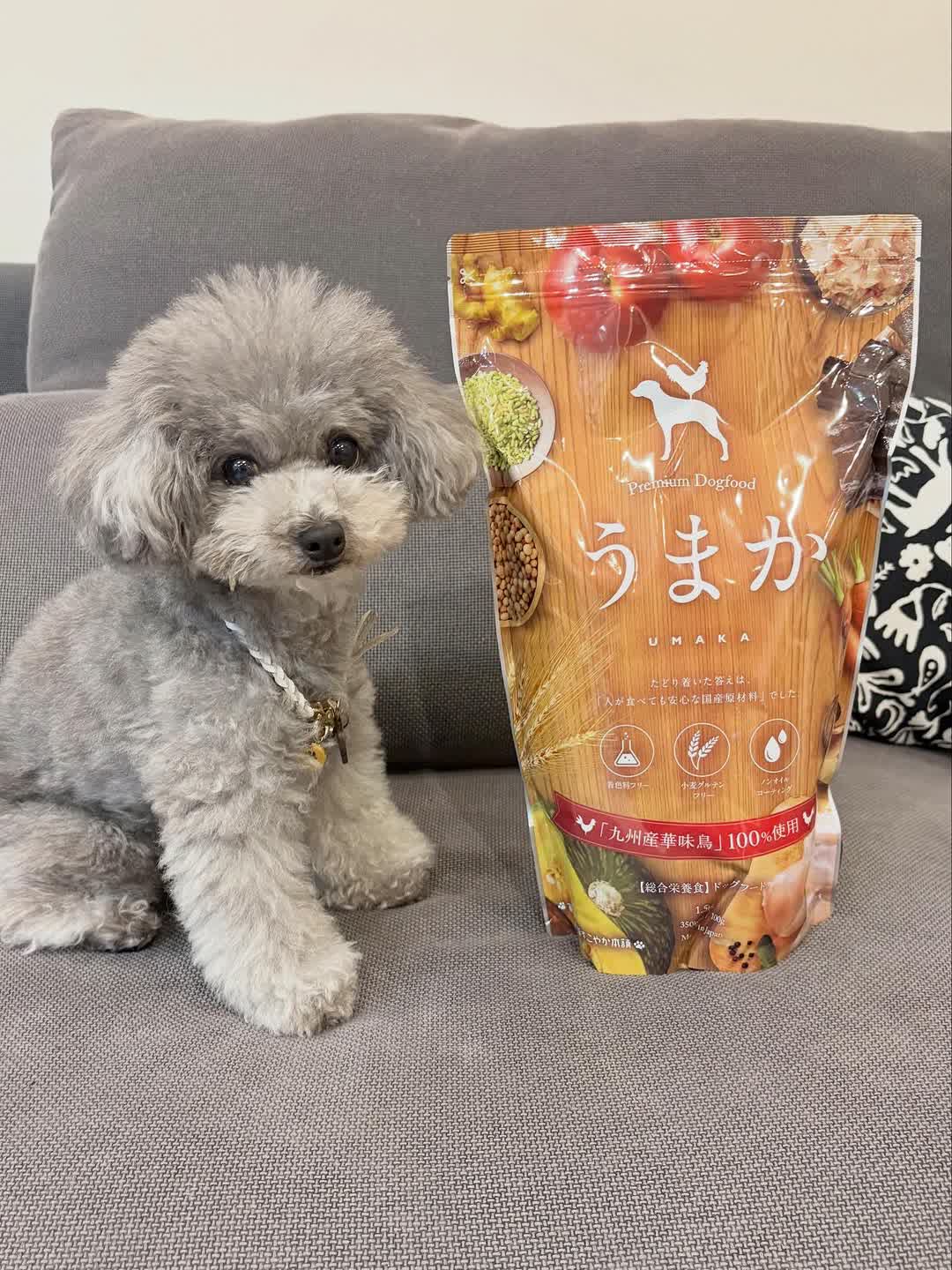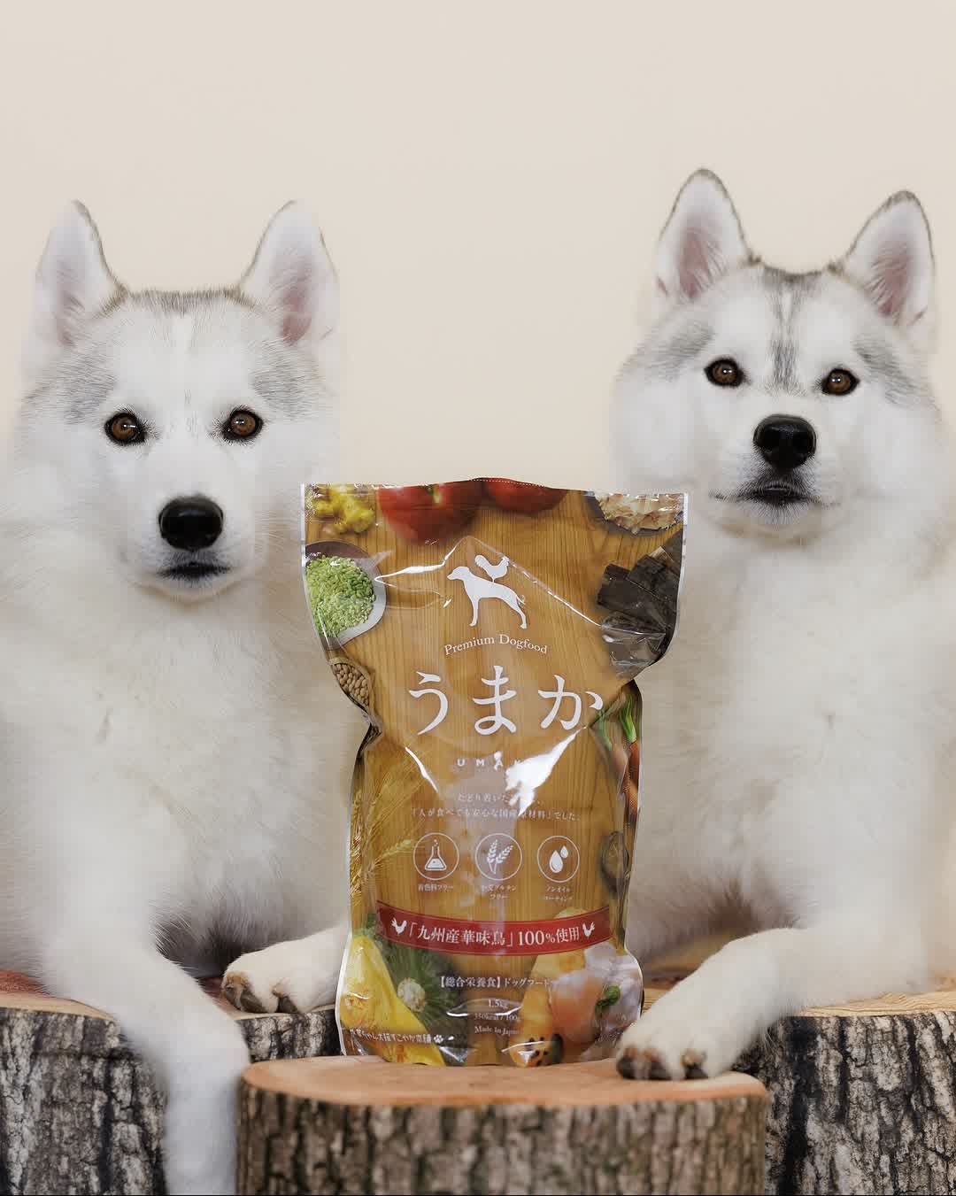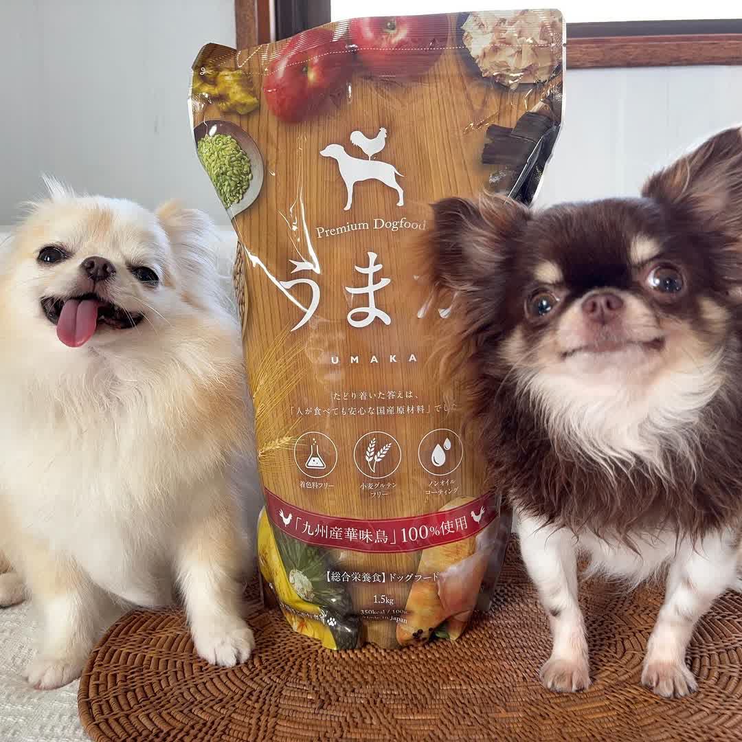 人間が安心・安全に食べられる原料で、愛犬に「うまか!(博多弁で美味しい、という意味)」と思ってもらえるようなドッグフードを作りたい!そんな思いから九州産華味鳥の新鮮な生肉を100%使用し、無添加で作り上げた、こだわりのドッグフードなんだそうです🍚✨