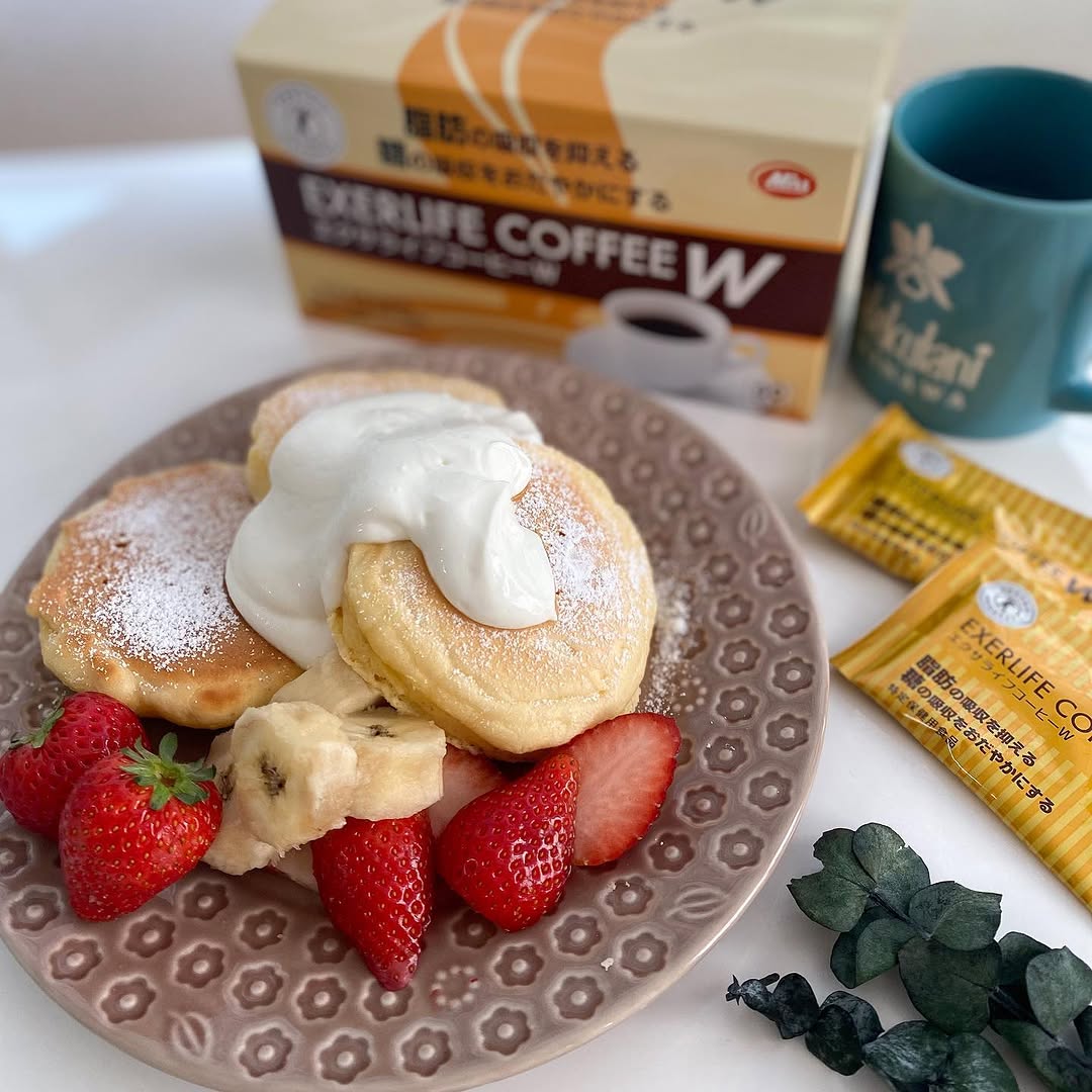 パンケーキと一緒にエクサライフコーヒーWを☕️